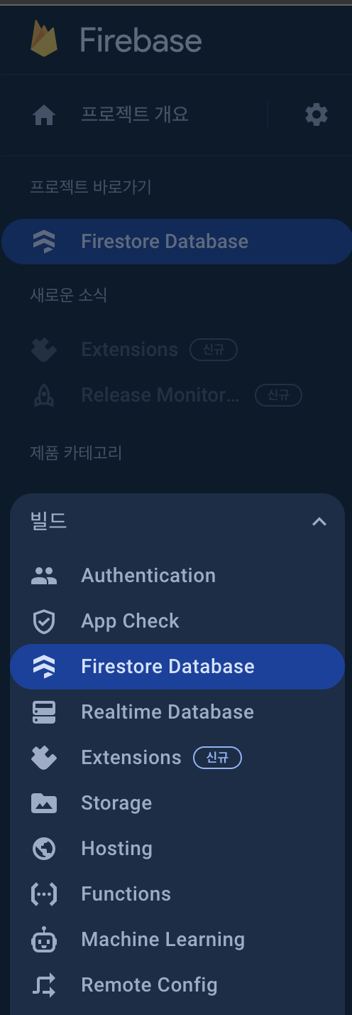 0.일단 파이어베이스에서 firestore을 활성화 시켜준다.