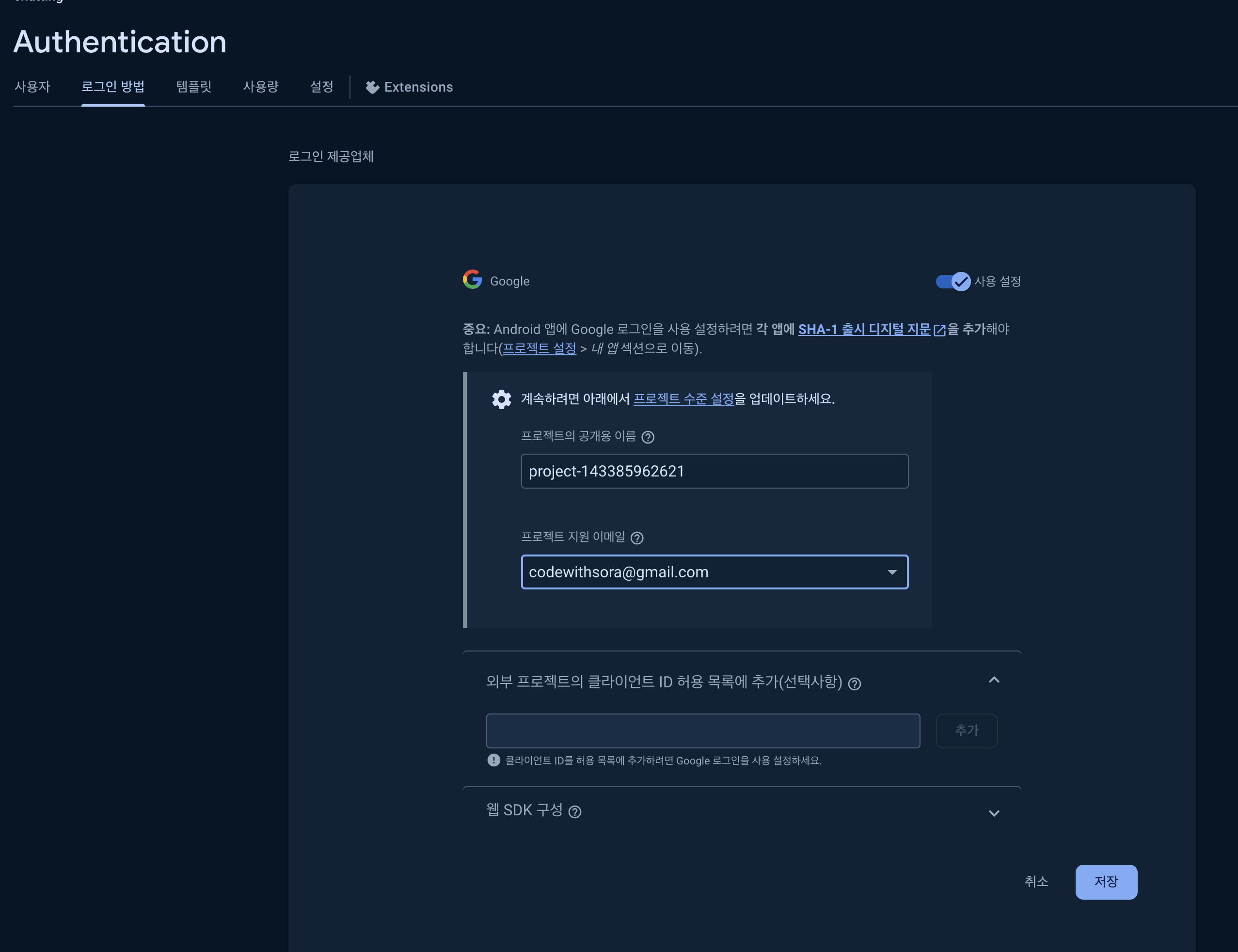 구글로그인이있다면서 왜 파이어베이스에 구글 로그인셋업안했니..? 참나...