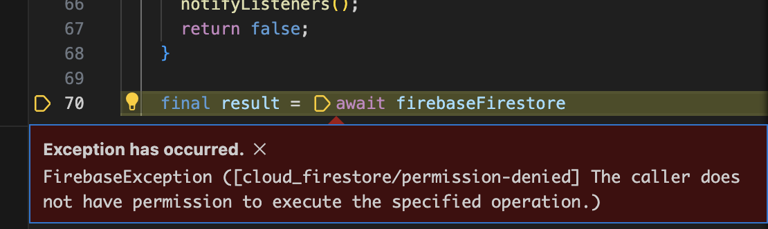 auth_provider.dart에서 에러가 난다. 퍼미션에러니까. 일단 한번 내 데이터베이스의 권한을 확인해보자.