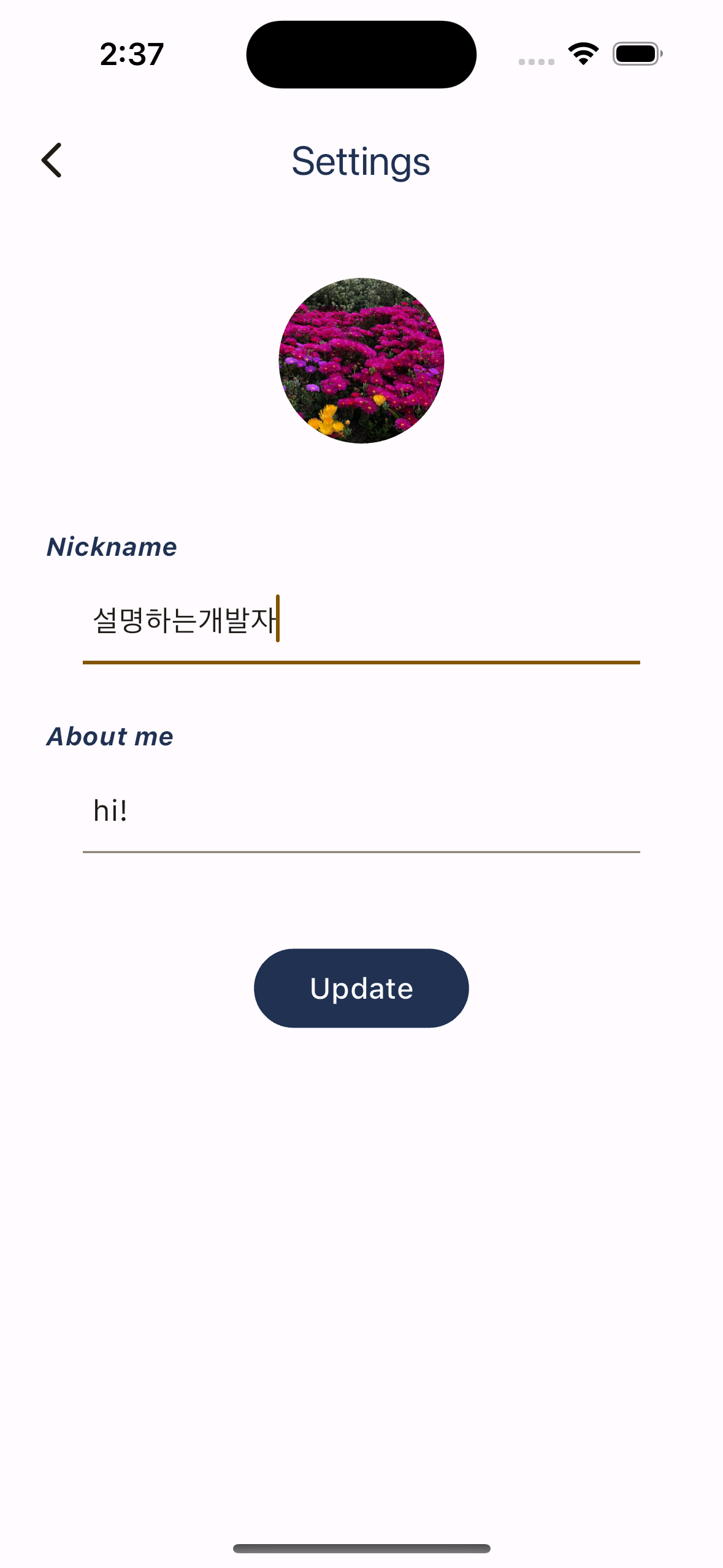 단순한 파이어베이스 업데이트다. 사용자가 본인 유저세팅을 변경할 수 있는 페이지이다.